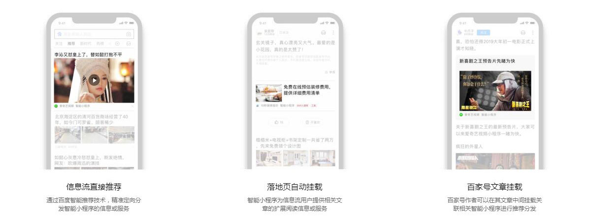 湖南魚竹科技旗下小程序通過百度智能推薦技術,精準定向分發(fā)智能小程序的信息或服務。智能小程序為信息流用戶提供相關文章的擴展閱讀信息或服務。百家號作者可以在其文章中間掛載關聯(lián)相關智能小程序進行推薦分發(fā)。